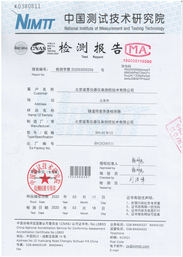 產(chǎn)品型號 BN-SLW10(洞外亮度) BN-SLW10(洞內(nèi)照度) BN-SDW21(洞內(nèi)照明色溫) 測量范圍 0~7000 cd/m2 0~20000 Lux 1500~25000K 測量誤差 ±1% 測量角度 垂直≥20°水平≥20° 模擬輸出 4~20mA(正比與測量范圍) 數(shù)字輸出 RS485(默認)或RS232(可選) 工作電源 100~220VAC 50Hz 防護等級 IP67 外形尺寸 376*136*164mm 280*200*180mm