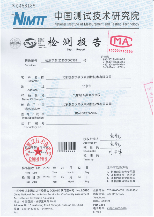 波恩儀器氣象站五要素檢測儀檢測報(bào)告