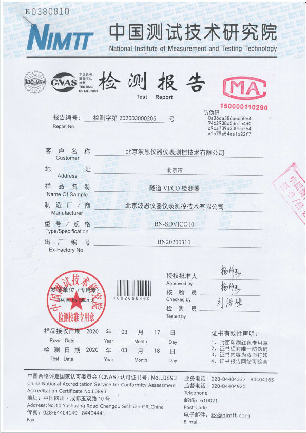 波恩儀器隧道VICO檢測器檢測報(bào)告