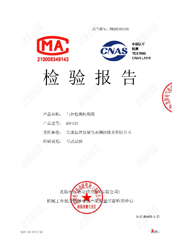 氣體檢測探測器防爆證書