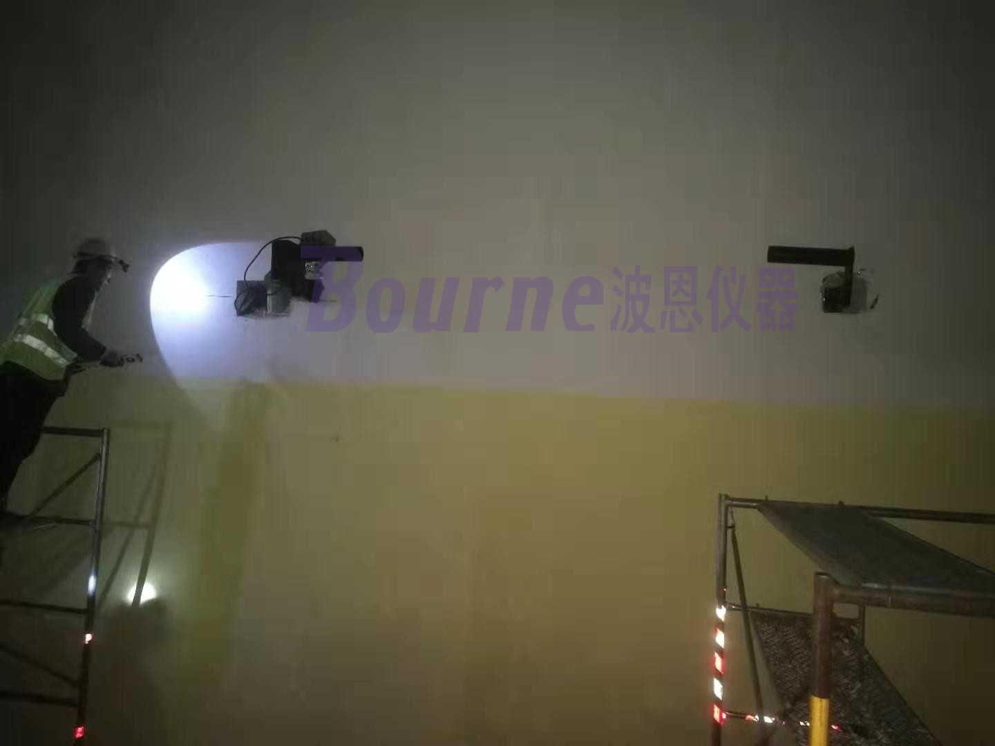 波恩儀器公司制造的BN-SDCOVI10系列檢測儀根據(jù)透射原理工作,發(fā)射/接收器和反射器相對安裝,利用支架固定對準后,光學部件發(fā)出的高聚焦光束成為一條檢測光束,安裝距離間隔3米(往返雙光路,實際檢測光程為6米),由于塵埃的衰減,接收器得到信號后處理為測量值。根據(jù)我國《公路隧道通風照明設(shè)計規(guī)范》要求,安裝在隧道頂部或者側(cè)壁上。